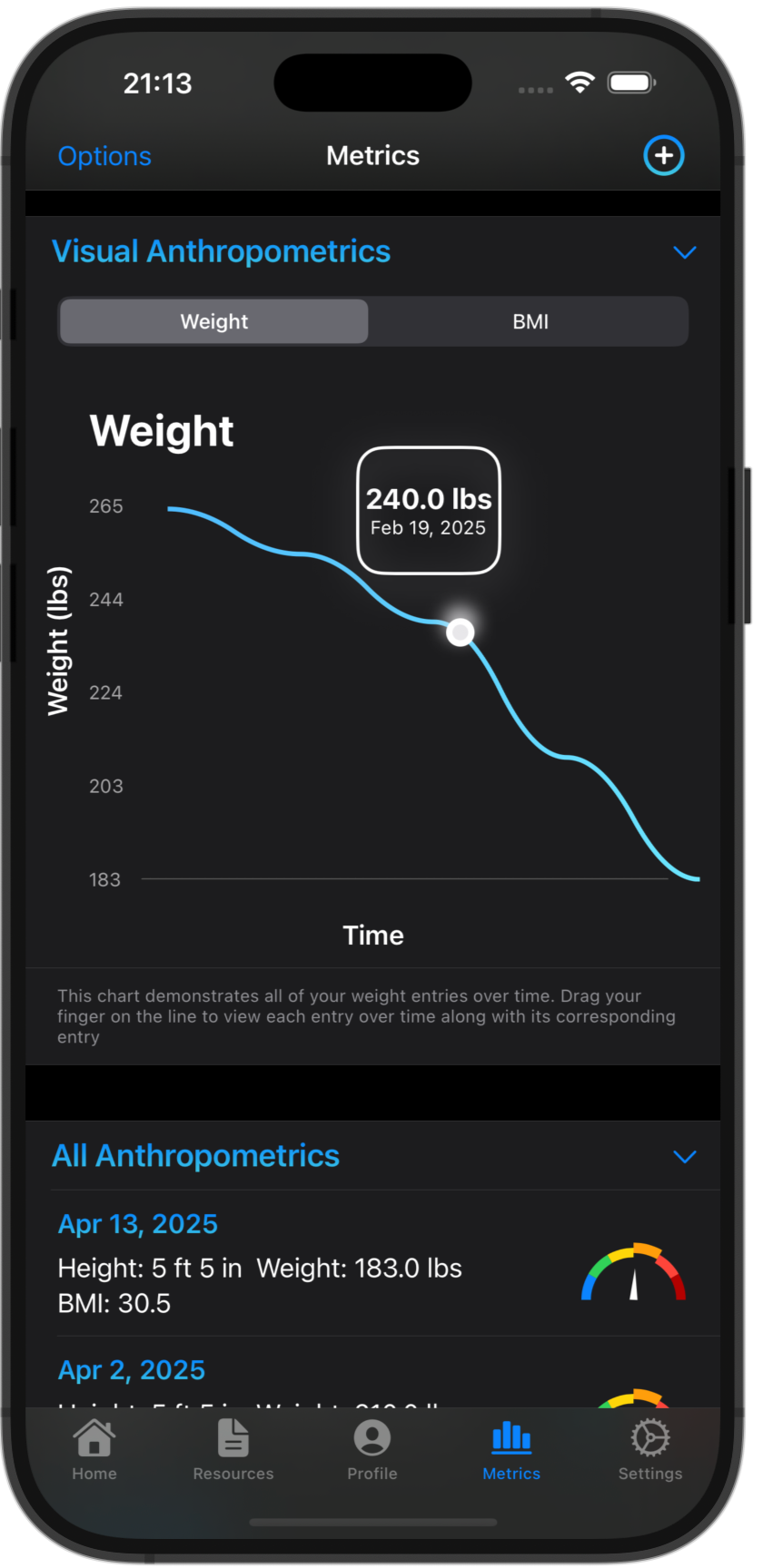 BariBuddy is an all-in-one lifestyle app designed to simplify your bariatric journey, offering curated resources, seamless dietary and anthropometric tracking in both imperial and metric units, and empowering you to take the next step toward a healthier you.